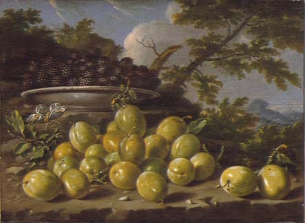 Still Life with Meat and Tavern Scene Still Life of Fruit