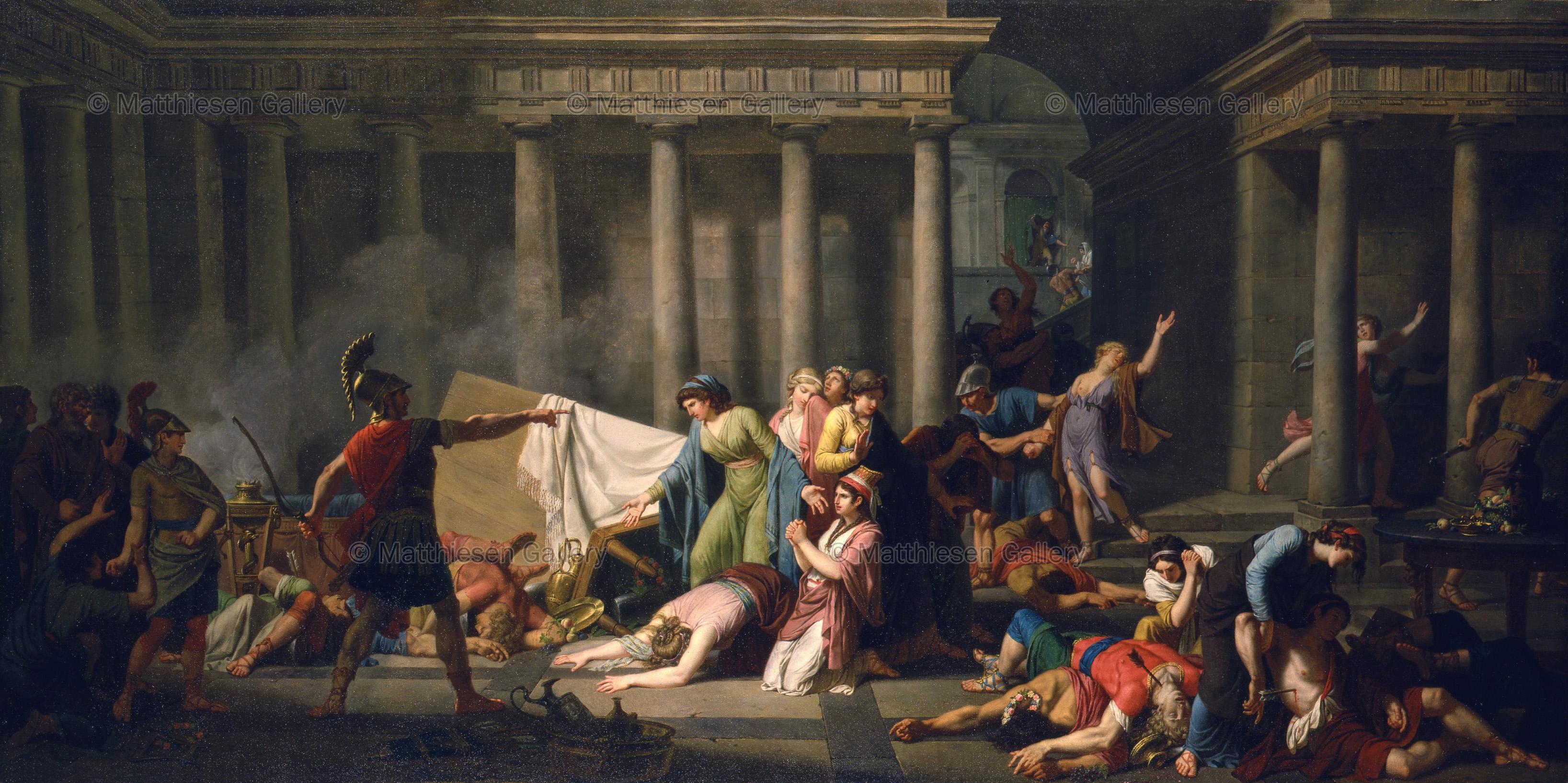 With the coming of the Revolution and the opening up of the Salons to non-Academicians, Monsiau responded to the challenge with a greater and broader range of entries. In 1791, among other works, he showed a portrait, a watercolor of Venus with her Family, a genre scene of a child playing cards, and our painting, the large scale Ulysses Returning to his Palace after Slaying the Lovers of Penelope, Ordering the Women to Remove their Bodies. He only exhibited two works in the next Salon, but in 1798 showed his Zeuxis Choosing His Models (See Fig.1. Art Gallery of Ontario, Toronto), inspired by Vincents splendid composition of the same title (Paris, Louvre, and variant Stair Sainty Matthiesen and Matthiesen Gallery until recently.).