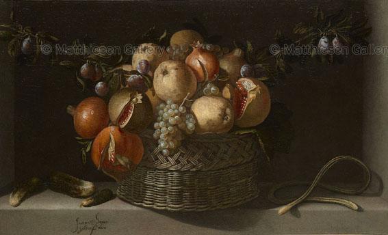 Still Life with a Basket of Apples, Pomegranates and Cucumbers on a Table Top(Juan van der Hamen)